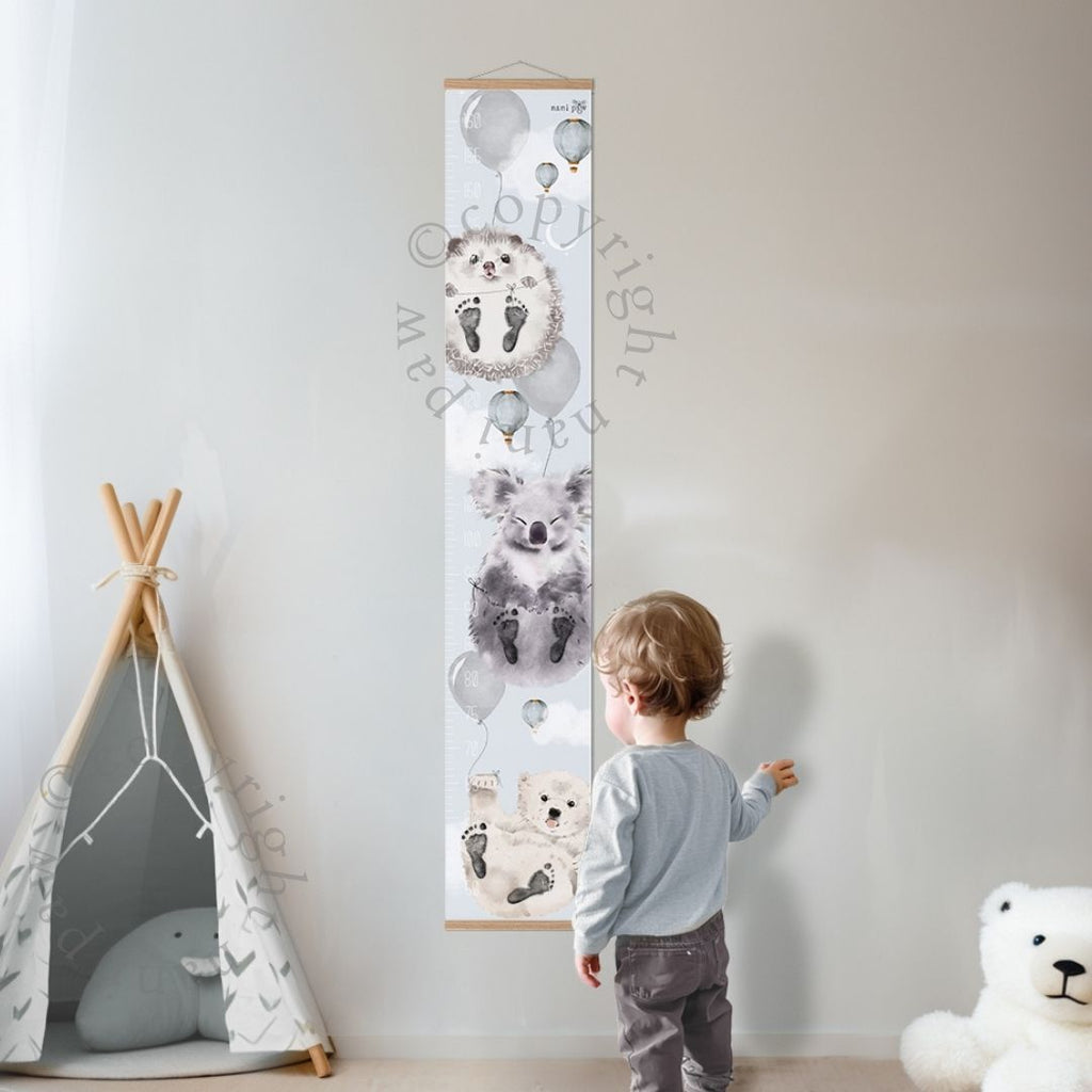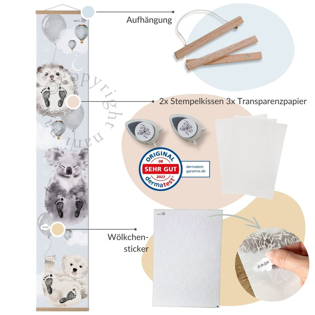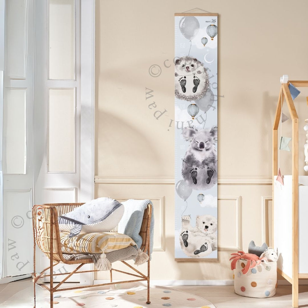 Halte die Entwicklung Deines Kindes Monat für Monat und Jahr für Jahr mit unserem niedlichen blauen Größenmesser "Lani" fest fest. Die Kleinen freuen sich, ihre Entwicklung zu sehen und für dich ein schönes Andenken, das Du auch mit jedem Umzug mitnehmen kannst.