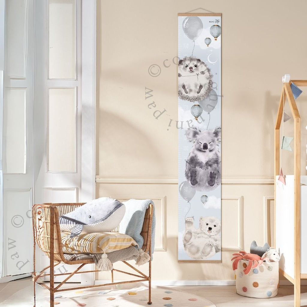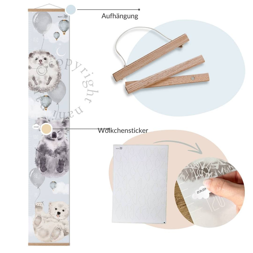 Halte die Entwicklung Deines Kindes Monat für Monat und Jahr für Jahr mit unserem niedlichen blauen Größenmesser "Lani" fest. Die Kleinen freuen sich, ihre Entwicklung zu sehen und für dich ein schönes Andenken, das Du auch mit jedem Umzug mitnehmen kannst.