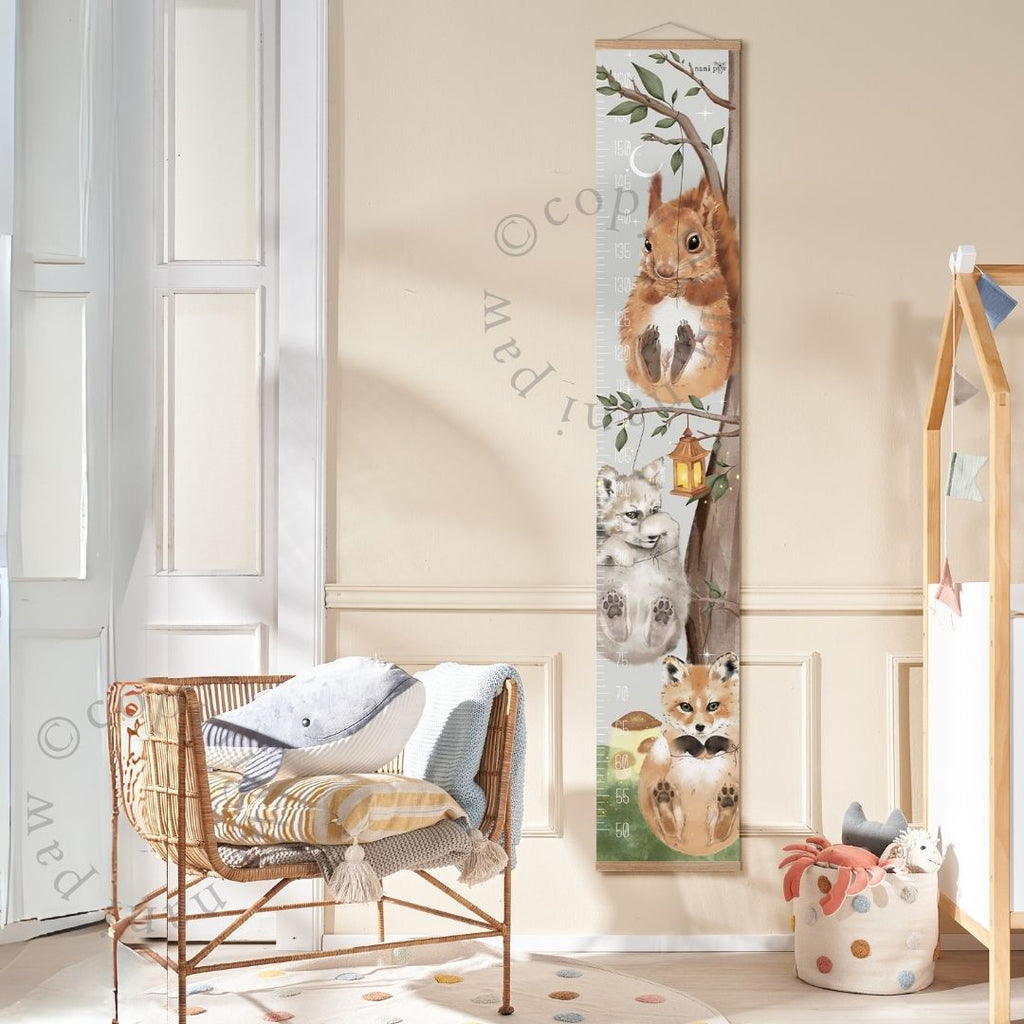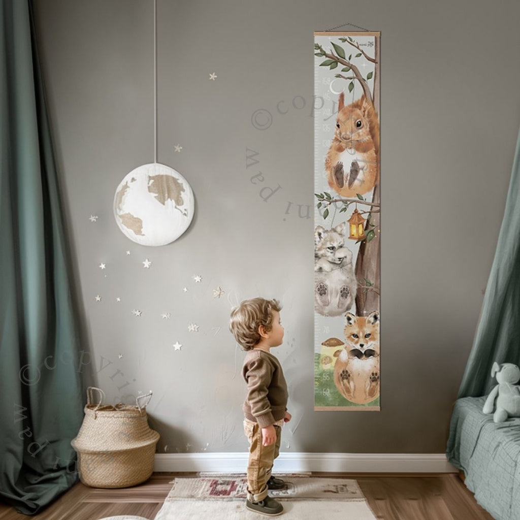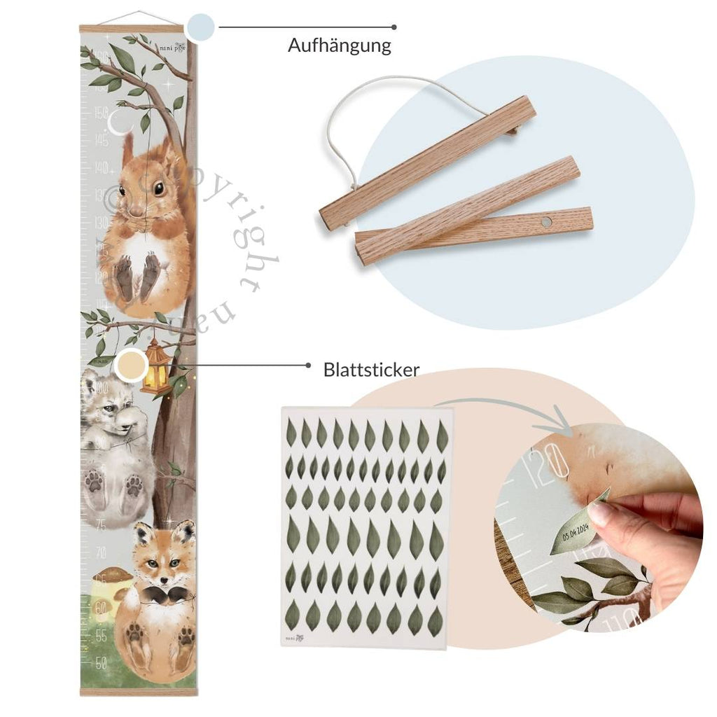 Halte die Entwicklung Deines Kindes Monat für Monat und Jahr für Jahr mit unserem märchenhaften Wald-Größenmesser "Nahele" fest. Die Kleinen freuen sich, ihre Entwicklung zu sehen und für dich ein schönes Andenken, das Du auch mit jedem Umzug mitnehmen kannst.