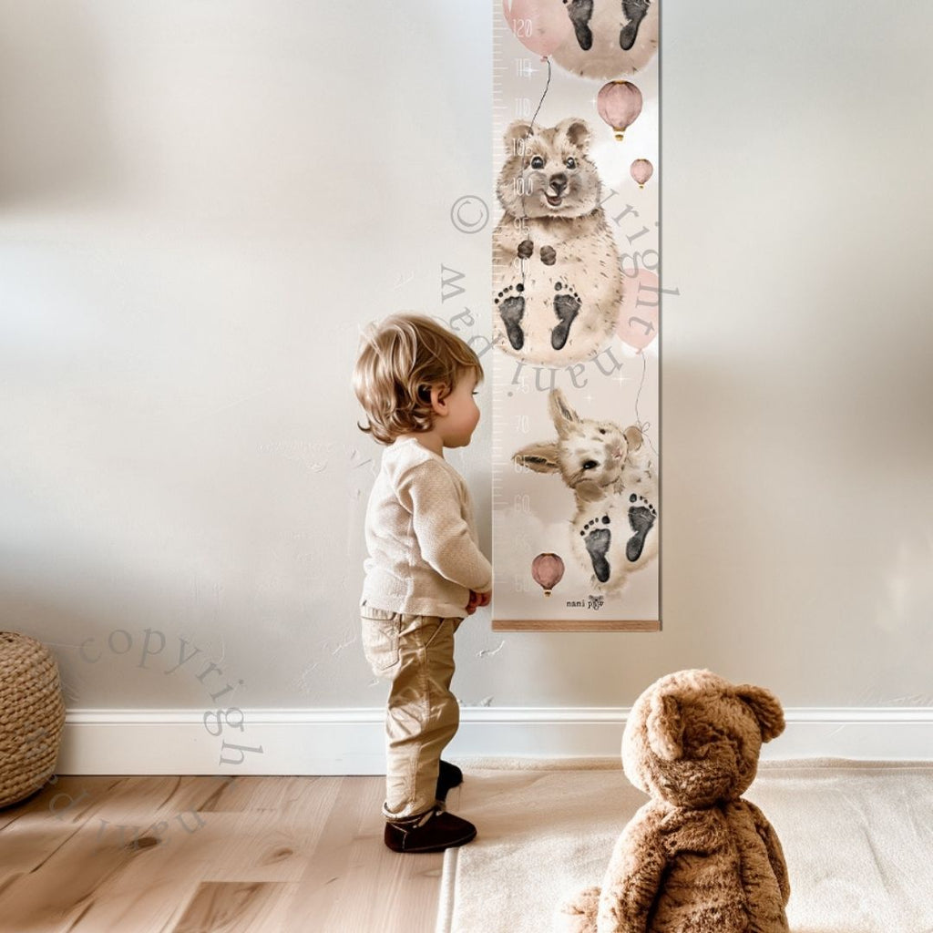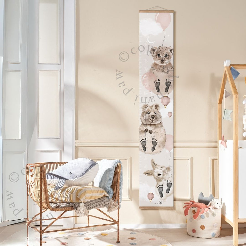 Halte die Entwicklung Deines Kindes Monat für Monat und Jahr für Jahr mit unserem niedlichen rosa Größenmesser "Hulili" fest. Die Kleinen freuen sich, ihre Entwicklung zu sehen und für dich ein schönes Andenken, dass Du auch mit jedem Umzug mitnehmen kannst.