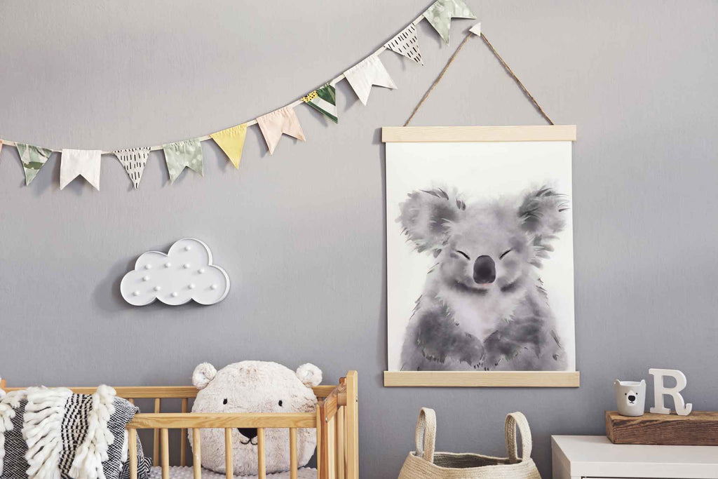 Unser Koala-Wandbild lässt sich sehr gut mit anderen Nani Paw Motiven kombinieren. Durch seine dezente Farbigkeit passt er in jedes Kinderzimmer und weiteren Wanddekorationen.