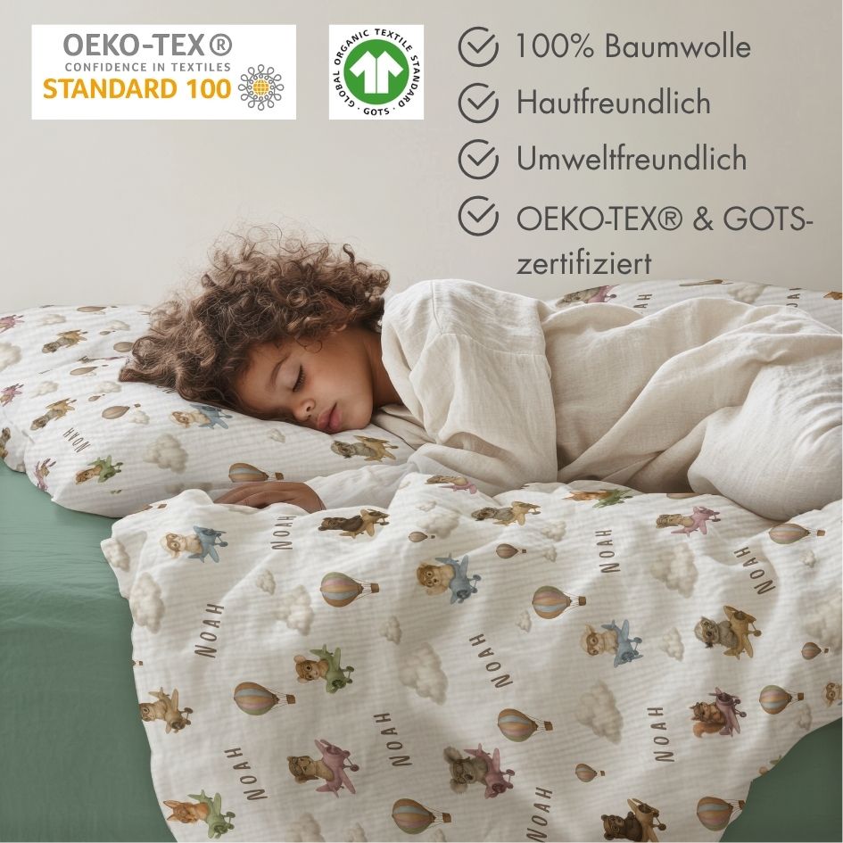 Personalisierte Kinderbettwäsche "Piloten" aus 100 % Premium-Baumwolle – liebevoll illustriert & individuell gefertigt